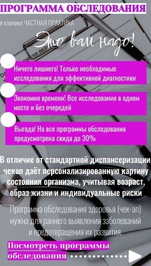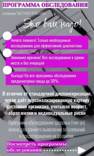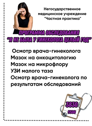 ПРОГРАММА ОБСЛЕДОВАНИЯ ДЛЯ ЖЕНЩИН “Я НЕ БЫЛА У ГИНЕКОЛОГА ЦЕЛЫЙ ГОД”